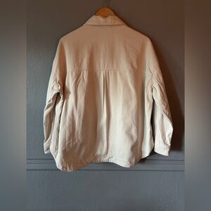 Effortlessly chic and easy to layer, this Zara lightweight denim shacket is the perfect transitional piece. In a soft ivory tone, it features a relaxed fit, oversized chest pockets, and gold-tone buttons for a modern utilitarian vibe. Wear it buttoned up as a top or open over tees and dresses for year-round style.