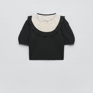 Zara limited edition lace pointelle knitted crop top