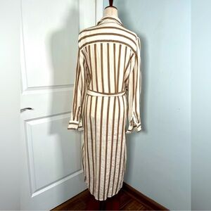 Zara linen blend striped midi dress SZ XS belted button down shirt dress summe