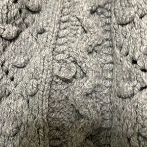 Zara long sleeve chunky cable knit turtle neck fringe grey cropped sweater