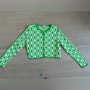 Green and white diamond design button down, long sleeve, crop, knit sweater