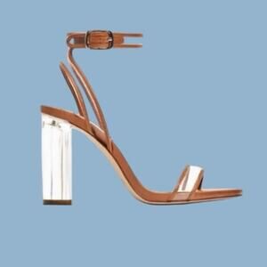 Zara lucite heels clear strap tan brown ankle block heels sandals