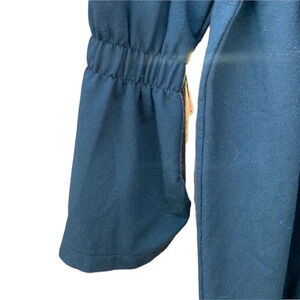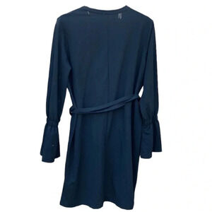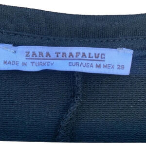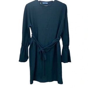 Zara medium black dress with belt, ruffled sleeves, pit to pit 22", length 34"