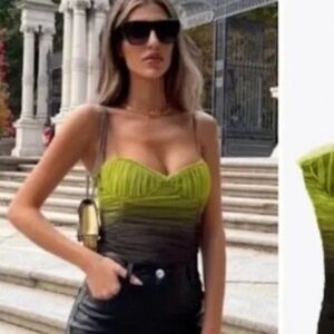 Stylish women's top featuring a chic ruched design. The vibrant green and classic black colors make it perfect for any occasion.