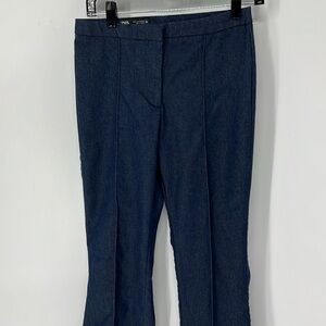 Zara mid rise flare pants women’s small waistband lying flat measures 13.5 inches. Rise measures 9 inches. Inseam measures 30.5 inches