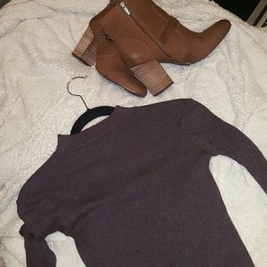 Never worn zara knit midi dress with mock turtle neck. Color is a plum with brownish tone. Stretches and hits right below the knee. Size S but can fit M.
