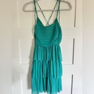 Super fun mini dress! Can adjust the ties however you like. Size medium but can fit a small. Comment any questions below!