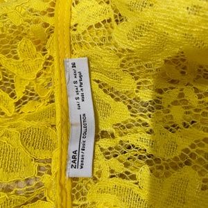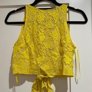 Zara yellow crop top with open back. Beautiful for summertime! Ties in the back. Looks great with jeans or denim or white shorts! In great condition.