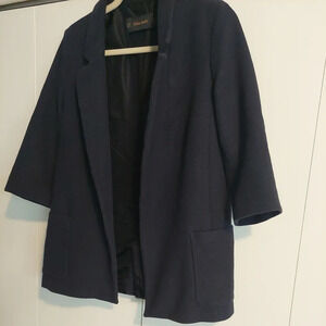 Zara open front Waffle Knit Textured Blazer Jacket Navy M Academia Preppy