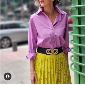 Pleated high-waist midi skirt. Matching cutwork embroidery detail. Inner lining. Invisible side zip fastening.
