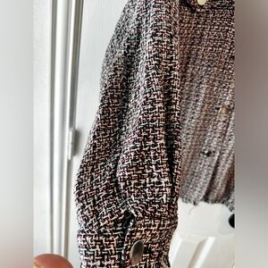 Zara oversize Blazer Womens S Red Black White Plaid Woven Textured Jacket Fringe