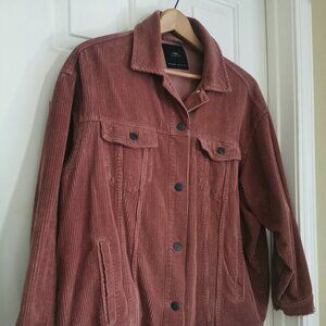 Zara oversized corduroy jacket in a dusty pink color, size large.