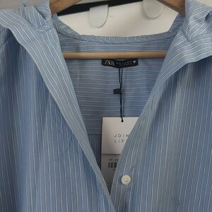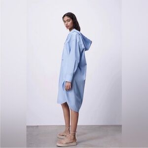 Zara oversized hooded poplin dress Size Medium NWT striped blue
