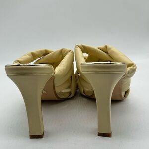Zara padded woven leather heeled mules, cream yellow 40 square toe