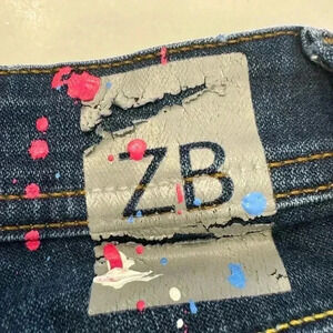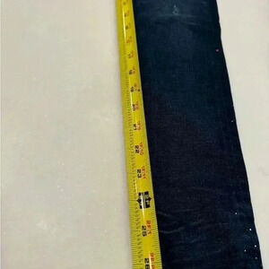 Unique pairs of girls jeans. The paint splatter is on the back, front and ankle. The jeans are a dark wash and have a raw hem. Please see photos for measurements