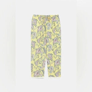 Zara paisley print linen cotton blend high waist pull on drawstrings yellow SX S