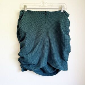 Zara Plaid gingham mini Skirt grunge goth punk academia green black cinched XL