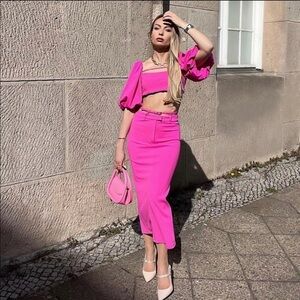 Step out in style with this elegant pink skirt. Perfect for any occasion, it adds a vibrant touch to your wardrobe.