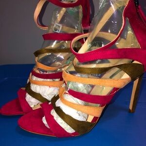 Zara pink tan brown multi suede straps peep toe stiletto heels size 41 new