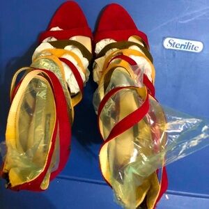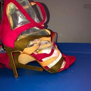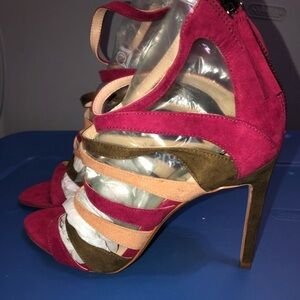Zara deep pink peeptoe stilettos with tan and brown suede straps new size 41/10