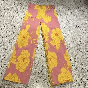 Zara pink yellow floral retro 60’s pull on pants high rise medium m