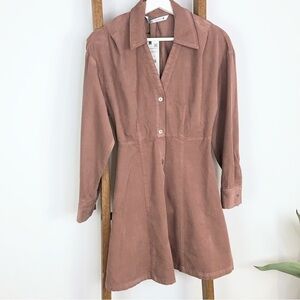 Zara pink/brown corduroy button up mini dress size XS NWT