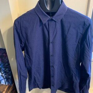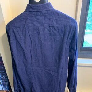 Used gerat polka dot button down Slim Fit Measures approx as follows Length 30 inches pit to pit 22.5 inches sleeves 26 inches I would say a Large
