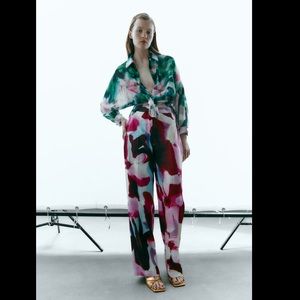 High-waisted straight leg pants. Front zip, metal hook, and interior button closure.
