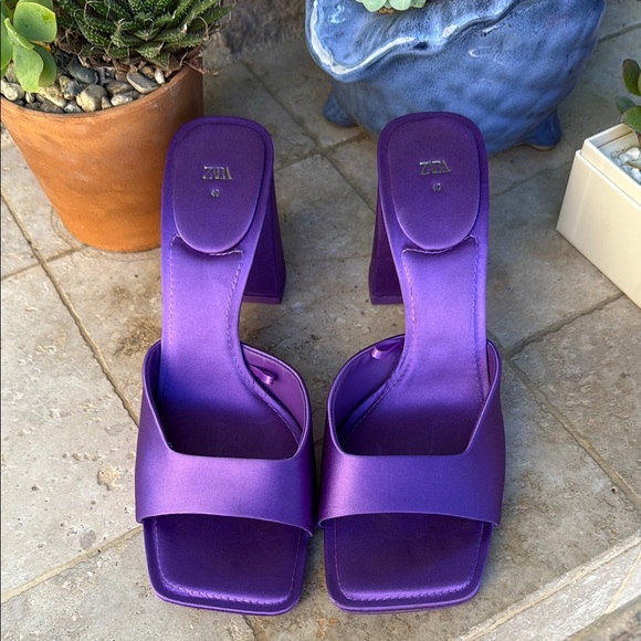 Zara purple satin sandals size 40 in very good condition. 4 inch heel. Worn once