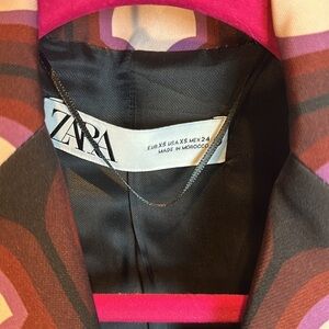 Zara purple/maroon/pink print one button blazer size XS NWT