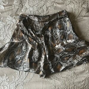Size XS silk python skort that is covered by the skirt on both sides. Ties at the waist, perfect as a coverup or paired with a black tee and sneakers
