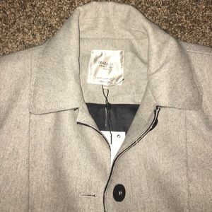 Trafaluc Zara long grey coat. Never worn, tags still attached! Amazing material! Size M. Raw edge look but has seam.