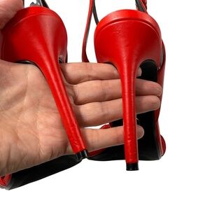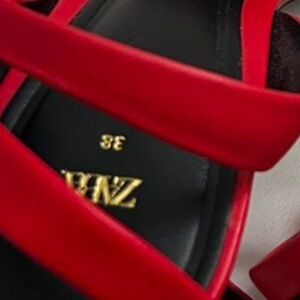 Zara red leather ankle strap gold chain link heels size 38 blogger favorite