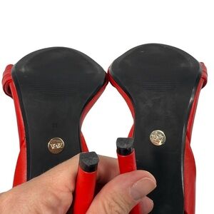 Zara red leather ankle strap gold chain link heels size 38 blogger favorite