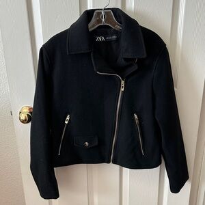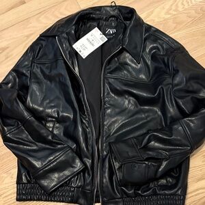 NWT. Zara outerwear red leather biker jacket.