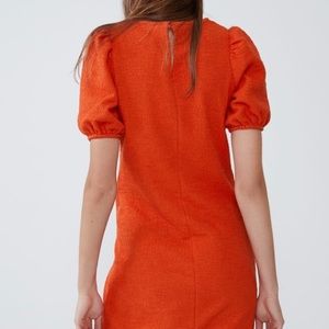 Look cute in red/ orange dress... puff sleeves very on trend.. wear work and go out for dinner afterwards