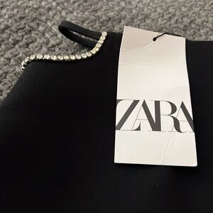 Never goes out of style but this one has gone out of stock! Gorgeous high waisted mini skirt made of viscose blend fabric. Side slit with rhinestone appliqués. Back hidden in-seam zip closure.