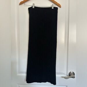 No flaws, just a tiny bit of fuzz on it from being stored with other skirts. Skirt is a well saturated black color, some pics were lightened slightly so the ribbed knit texture could be seen.