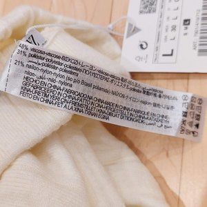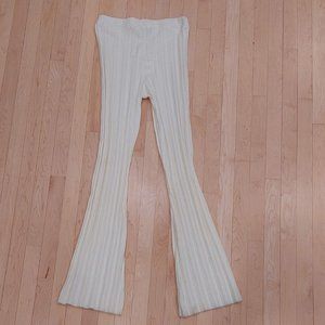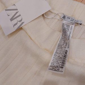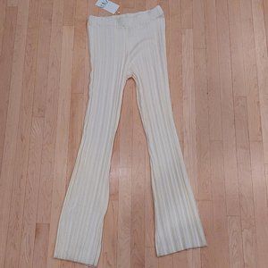 Zara ribbed pull on cream pants size L NWT. Stretch, they mold to the body. Color is off white. Has a slight mark on the waist from the hanger, almost unnoticeable (last picture). Slightly dirty at the bottom from hanging, it will come out, but I haven't washed them because they're new with tags.