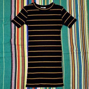 Zara ribbed striped t shirt mini dress in black red green and yellow size small