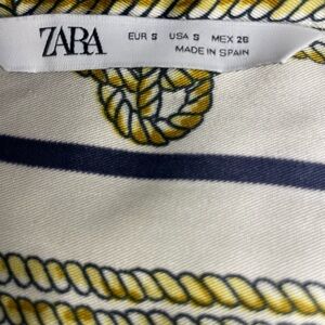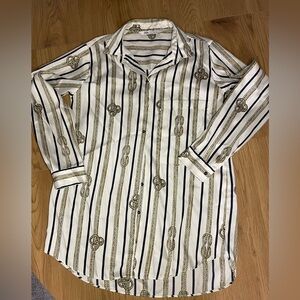 Zara rope printed long sleeve blouse featuring elegant white and gold stripes. Perfect for any occasion, this shirt combines comfort with a touch of sophistication.