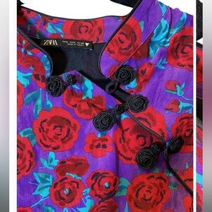 Zara rose print dress frog button blogger favorite classic oriental fall party