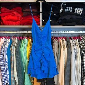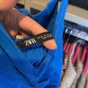 Zara royal blue backless with tie ruched front spaghetti strap dress size M