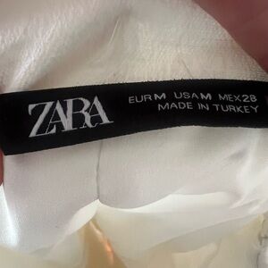 High-waist gathered skirt made of a linen blend. Ruffled hem. Invisible side zip fastening.