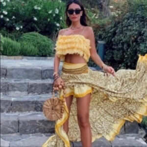 Zara ruffled tulle tank crop top in butter yellow