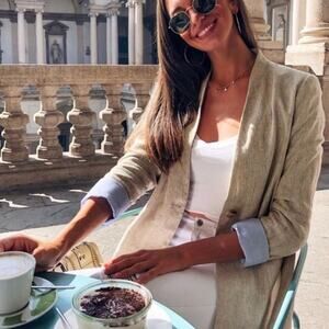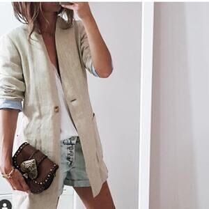 Zara rustic striped coat pinstripe belted blazer Bloggers favorite sz XS