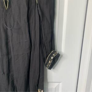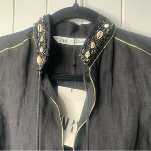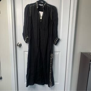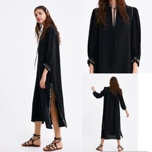 Zara seashells linen black embellished midi dress size XS has pockets vacation