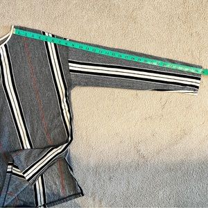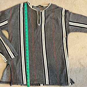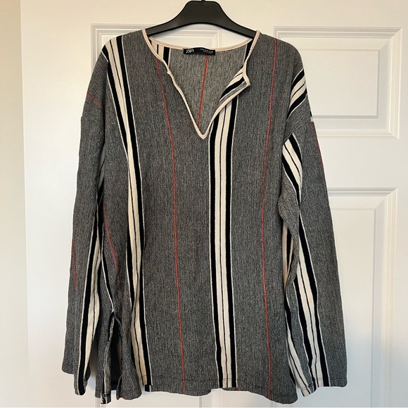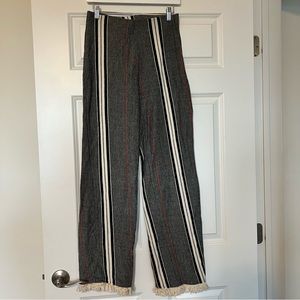 Zara set of cotton blend wide leg striped fringe hem pants and long sleeve v-neck top. 98% cotton, 1% polyester, 1% viscose in excellent condition