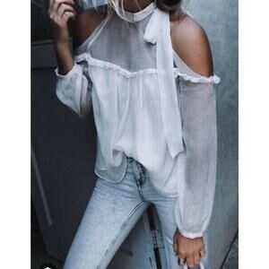 It kind of looks like there is a tie by the side of the neck in the stock Pic. But I don't see it in the actual pics. Is there a tie?