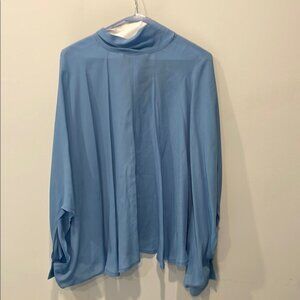 This stylish blue blouse from Zara features a unique asymmetrical design with a tie front and a sailor collar. The long sleeves add a touch of elegance, making it a versatile piece for various occasions. Its flowing silhouette and soft fabric ensure both comfort and style.